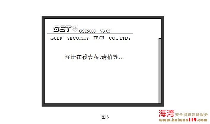 完成以上操作后,系統上電進行初始化(畫面顯示如圖1所示)。初始化完成后進入對運行記錄、隔離信息、聯動公式、聲光電源的自動檢查狀態(畫面顯示如圖2所示),自檢完畢,控制器對外接火災顯示盤、探測器和模塊進行注冊(如圖3所示),并顯示注冊信息 (如圖4所示) 。至此,開機過程結束,系統進入正常監控狀態。主機鍵盤上設有“自檢”鍵,按下此鍵后系統將進行和開機時相同的聲光及電源檢查。 關機過程按照與開機時相反的順序關掉各開關即可。要注意各個備電開關一定要關掉,否則,將有損壞電池的可能。