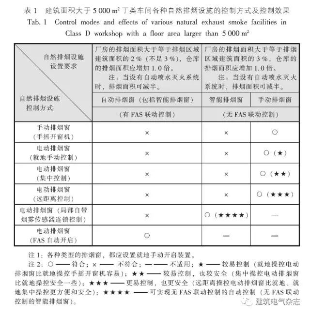 除特別規定條款外,無論DGJ《防排煙》還是GB《防排煙》,當不設置FAS的公建、廠房或倉庫在滿足一定的自然排煙條件情況下,結合工程的實際情況和業主的委托要求,按規程、規范設置相應的就地手動排煙窗(包括手搖開窗機、電動排煙窗)、集中控制的手動排煙窗(包括集中控制、遠距離控制)或無FAS的智能排煙窗,均合情合理、合法合規。